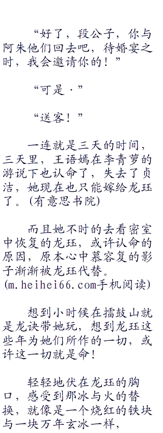 至于她?她明白两人之间的差距,自己就当什么也没有发生过就行了,到时候师姐还是岳母,就看龙珏的态度就行了,只要龙珏与王语嫣幸福,这或许就是皆大欢喜的局面。