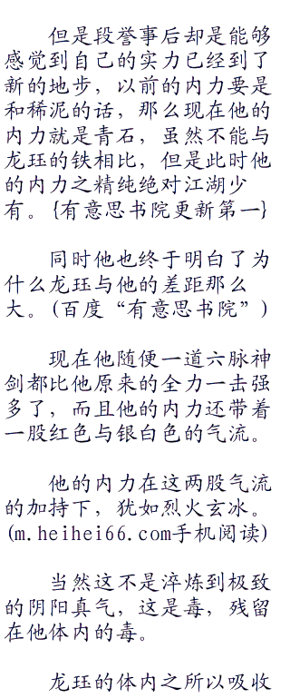 知道龙珏在那毒药的淬炼下,真气在阴阳相济之上达到了极致,烈如阳火,冷若玄冰,段誉要是达到了那样的地步,对于他来说绝对是大造化。