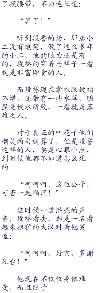 段誉浑身狼狈的走进了一个酒楼,脸上郁闷之极。