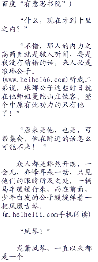 “这位大侠所言甚是,这琴艺却是依靠内里所发,好像在五里之外·”