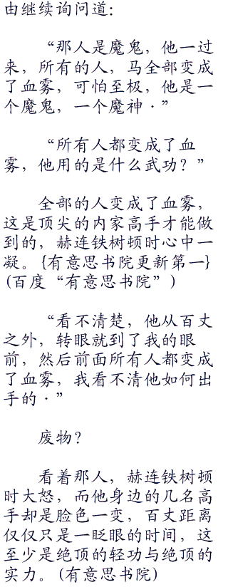 但是此时下面的那人根本就不在乎赫连铁树的杀意,下身那被尿打湿的裤子都没有丝毫察觉,依旧沉浸在那可怕的一幕中。