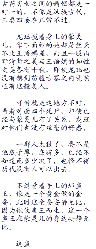 蛊是什么?就是我们苗家人养的,至于那些所谓的传言不过外人编造的而已,即使我们很多苗家人都相信,但是只要读过我们苗家古籍,基本上都知道蛊是没有天生一说!