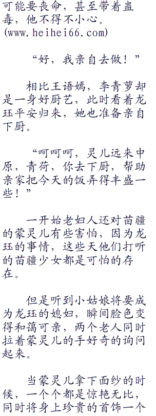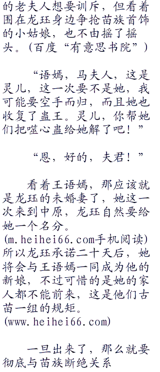 幸好老人也知道蒙灵儿现在无心苗族,所以叮嘱蒙灵儿千万不要拿出蛊王!