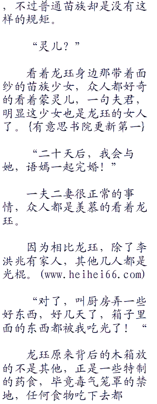 尤其是龙珏外面还有一个妻子,让龙珏甘愿进入禁地取蛊王的妻子,所以第三天,龙珏与蒙灵儿一起走出了大山,带着苗寨众人的祝福与嫉妒。