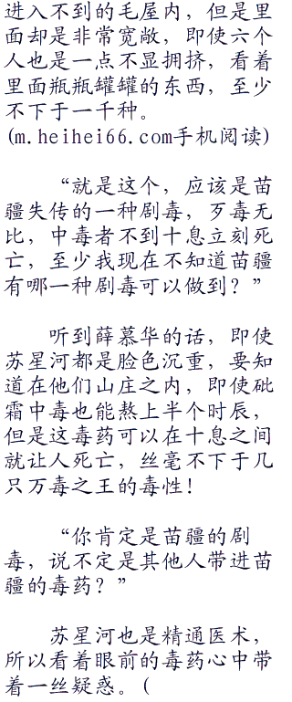 而且毒死了三个人,即使苏星河也是脸色一变,琅琊山庄的护院都是高手,而能够安排到几人手下帮忙的,或许不是武功最高,但一定都是一些颇具天赋的人,死一个都是可惜。
