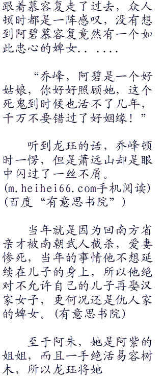 “阿碧,你不是要去照顾他么?你也去吧,一个废人,活不了三五年了!”
