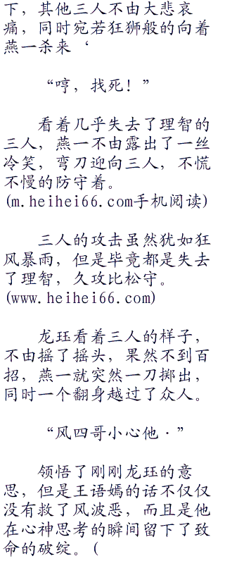 “杀!”邓百川也听出了龙珏的意思,他们四人可能要永远留在这里了,所以今天他们杀了燕一,活着离开,赌龙珏不会丢下面子对付他们。或者燕一杀了他们,永绝后患。