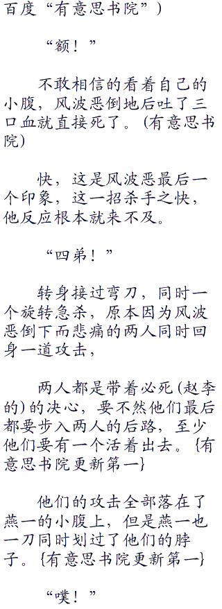 “风四哥小心他要拦腰切腹!”