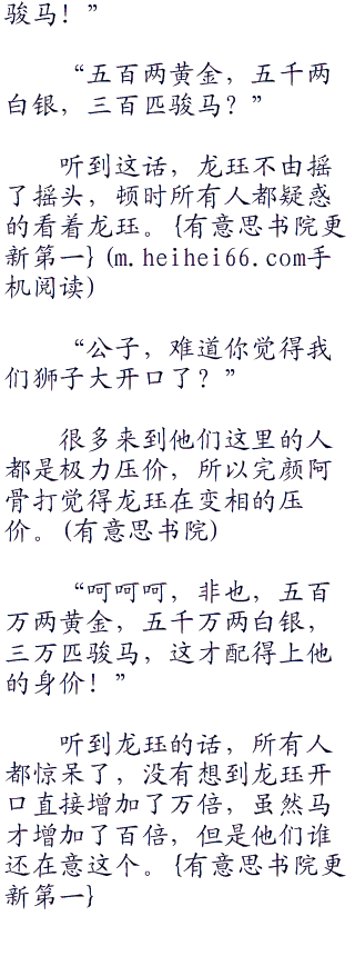 当然这也不怪那些中原商人,正如龙珏说的,万里之遥,一路上这里都是强盗众多,来这里的也算是淘宝之人,所以都是极力的压价。