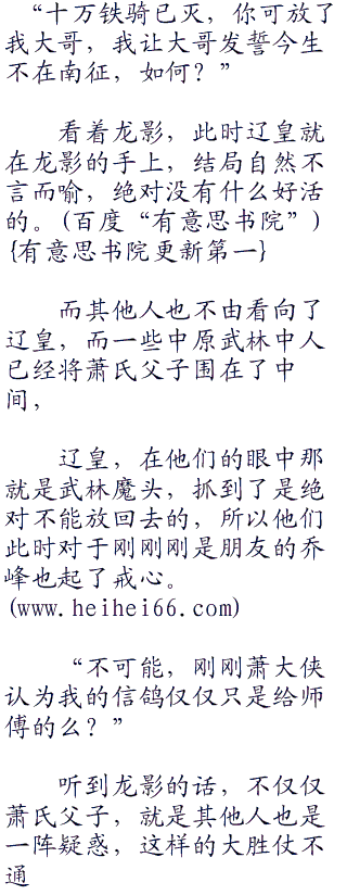 看着龙影如此说,乔峰也不好说什么,不错,以他的性格,绝对不会大开杀戒的。