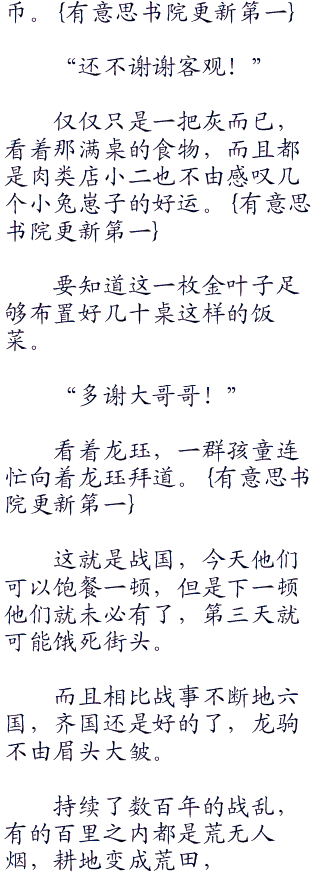 而齐国可是最弱的,齐国是六国中唯一投降的国家,而且常年没有战争,加上国王昏庸,所以军备不修,当年秦国攻来,可以说是一路无阻,根本没有可以抵御的士兵。与其他各国比起来,就像是宋与大辽一样,更何况这是一个什么样的世界,比起东汉三国还要混乱的世界。
