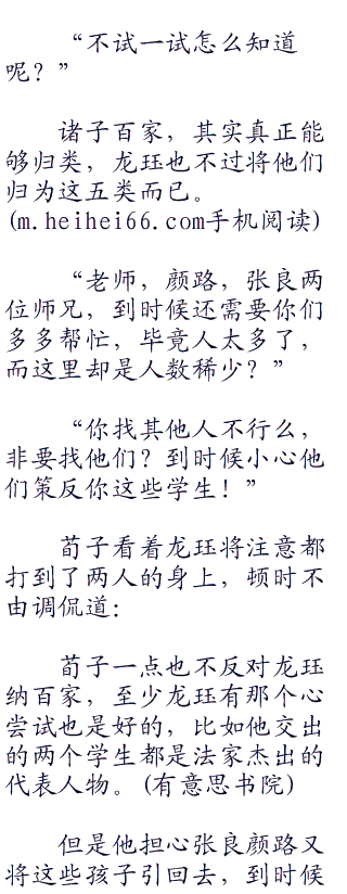 不过荀子主要来还是蹭酒蹭茶,龙珏每个月孝敬他的酒根本就不够他喝得,更何况还有那香茗,过来以后,张良他们也沾了不少光。