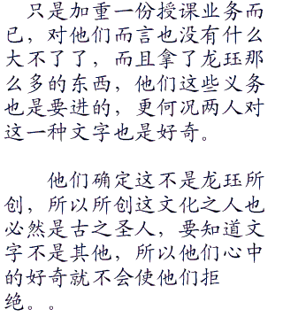 不过他们真正心惊的是,龙珏山庄内的所有人读的都是另外一种文字,不是七国中的任何一种文字。龙珏称之为楷书。