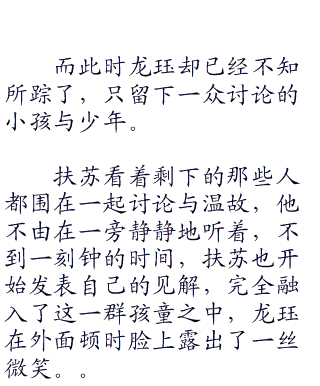 “这是龙腾,秦朝贵族之后,今后他与你们一起学习,希望你们可以相亲相爱。”