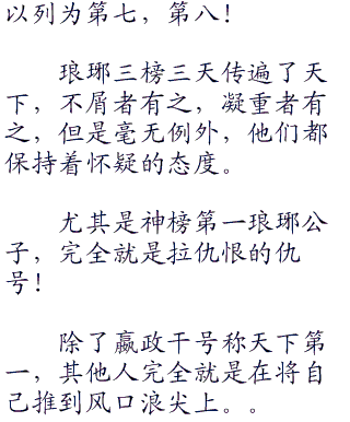 看着龙珏递过来的卷轴,众人都看到了上面的三个字,琅琊榜!