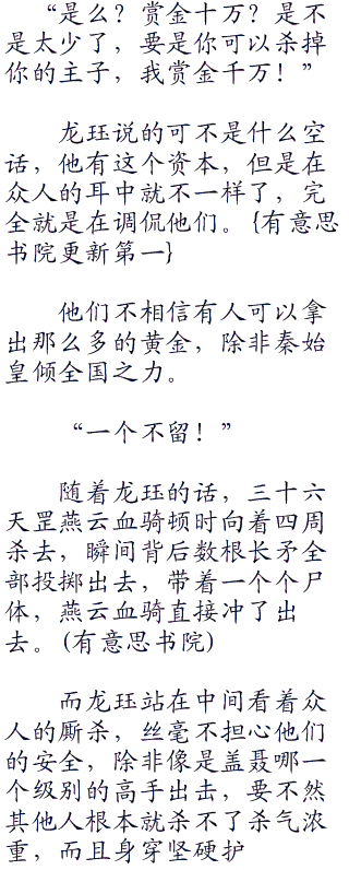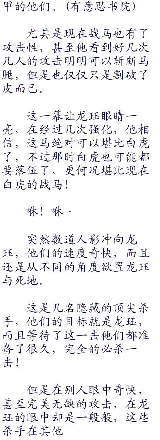 一阵马蹄声,突然数十道黑色影子直冲而来,那一股杀气笼罩下的杀手都是脸色巨变,。