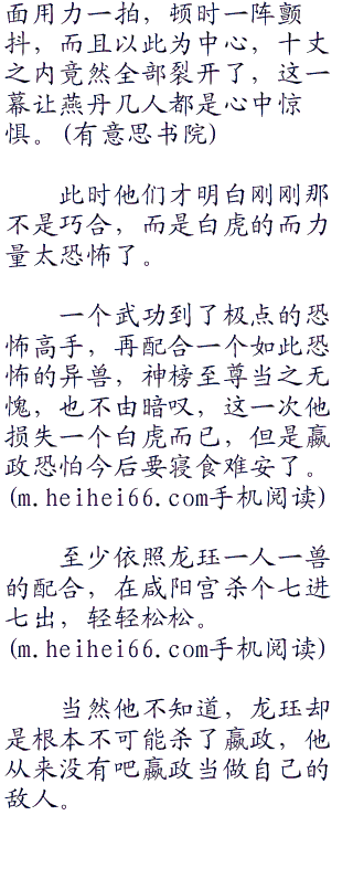 而面对机关白虎,龙珏都自信可以与之正面相抗,虽然不可能一击击败白虎,但是拖着虎尾也能一下子甩出十丈之距。