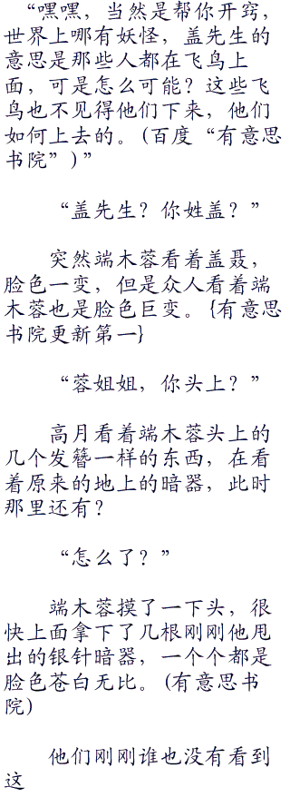 他们武功极高,至少他们看着三人不是站在树干上,而是树的顶端,不足一只家猫站立的纤细枝条,而且还是踩着树叶,轻功之高,绝对属于顶级之列,而且以来还是三个人。