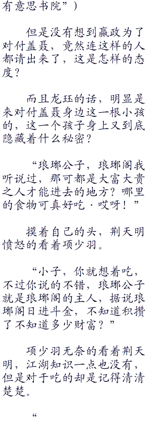 “你眼中的鲜明君主是墨家巨子,在项氏楚国之人眼中就是这一位项燕的后人,还有其他各国的后裔都有自己的头领,君王后裔,各路义军首领,呵呵呵,到时候百家争锋,不知道·”