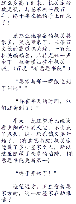 龙君没有看他们,而是看着墨家隐藏的机关城,脸上不带丝毫的表情。