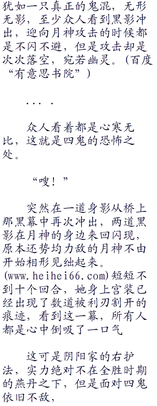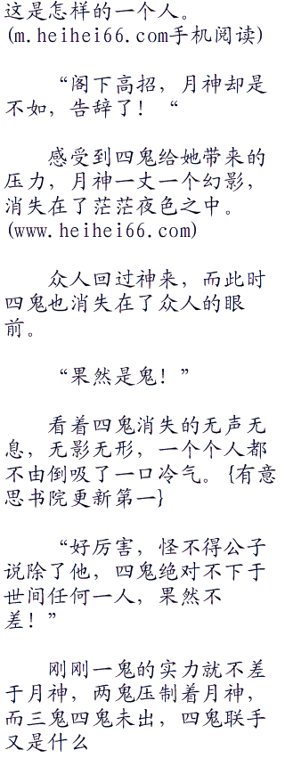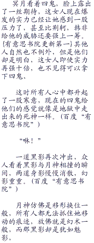 伤到了月神,站在一丈外的月神凝重的看着已经融为一体的四鬼,而其他人也是凝重无比。