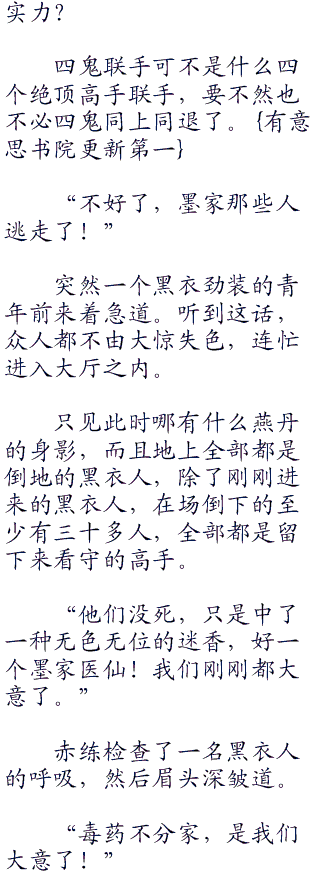 四鬼的实力如何他们不知道,冥月的忌惮众人就看得出来四鬼绝对实力极强。至少可以一瞬间击退白凤的人,即使全盛时期的燕丹都做不到。