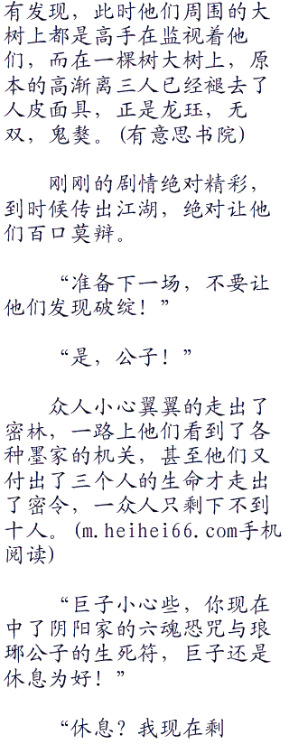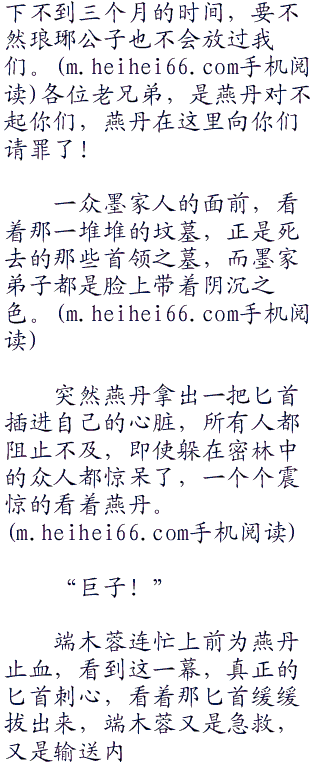 “我们走,我们完成了他的吩咐,他该放了阿雪,端木姑娘与巨子了。他们死后,我们今后墨家隐世,风波平息后再度出世,希望可以忘记这一段黑暗的岁月!”
