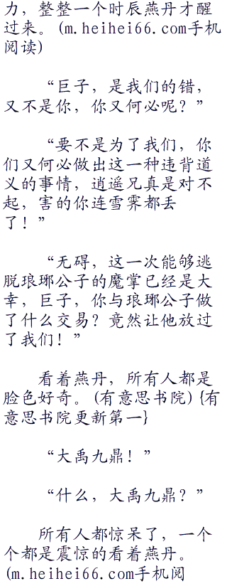“大铁锤不要伤心了,为了端木姑娘,为了巨子,他们会原谅我们的!“