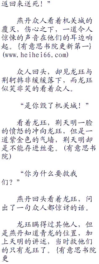 除此以外,龙珏还将机关城内的各个机关都做了手脚,只待最后的一声号令,整个机关城就会毁灭。