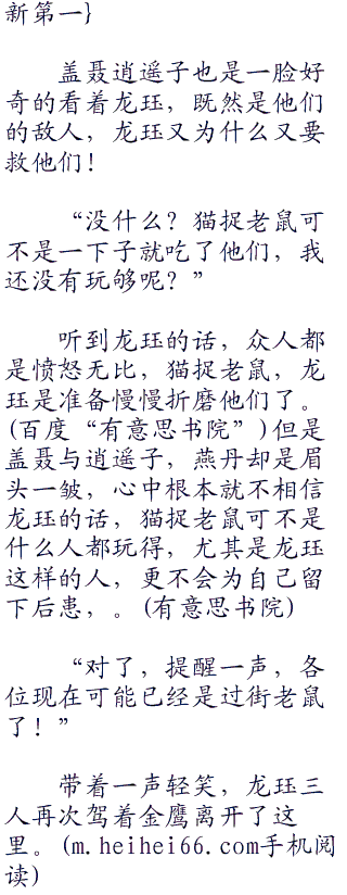 此时龙珏身边站着一个迷惑的小姑娘,正是高月,而荆天明已经让一只金鹰带着去找燕丹他们了。