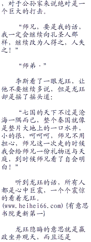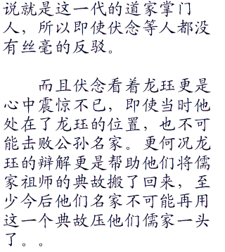 “原来一向好为人师的儒家,也不过这等程度而已么?莫说是和李大人的法家相提并论,就是和我公孙名家相比,也是不如得很!”