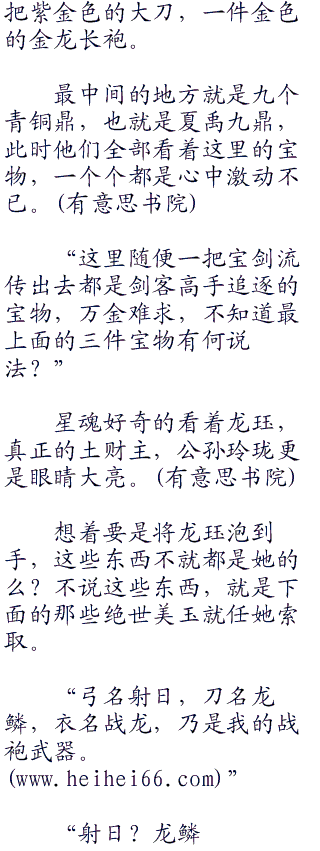 “道家逍遥,九鼎也罢,三鼎也罢,你心中认为他是权利的象征,那么它们就是众人心中的禹王九鼎。要是你认为他不是九鼎,那么他就是一堆废铜!我铸九鼎为祭天,崇炎黄之学。”