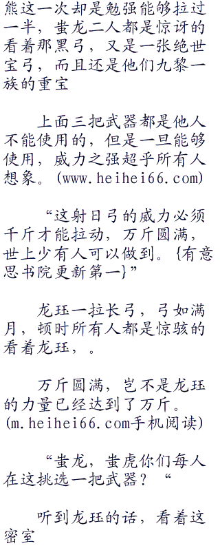 蚩龙看着还在吃力想要拉动长弓的蚩熊,此时蚩熊的手掌已经出血了,但是依旧还是没有拉开多少。