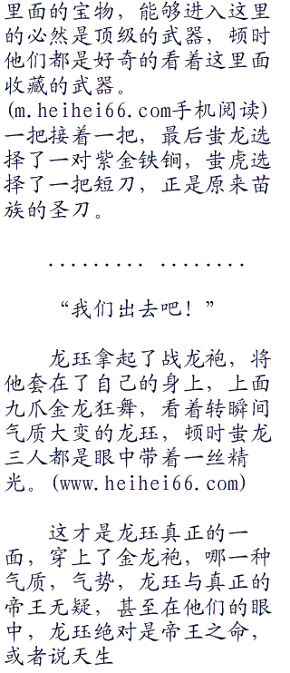 蚩龙赤虎三人都是高手,都能感觉到这里面的东西都是宝物,尤其是看着最里面的三件东西,三人都明白这绝对是绝世神兵。