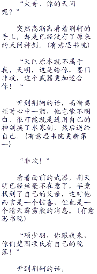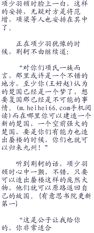 项少羽看着荆轲,在看着天明,脸上不由露出了一丝惊奇道: