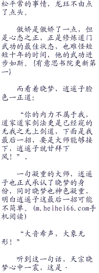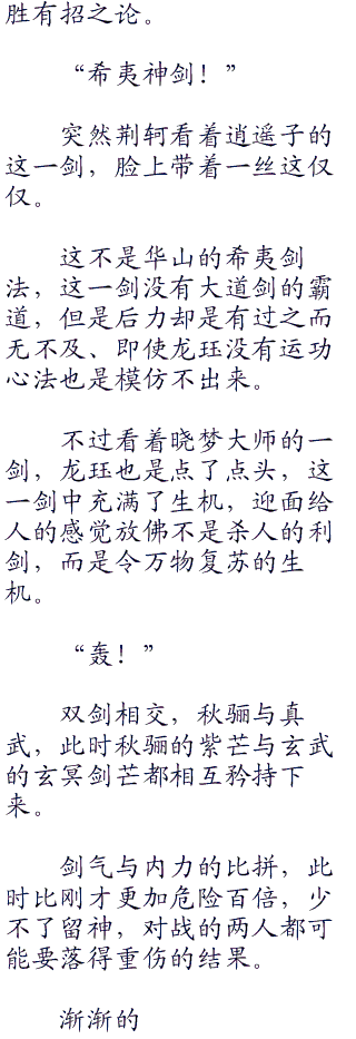 而且内力上也是一样,两人交手不下于百余招,但是晓梦大师却是一直都进退自如,甚至一剑一动之间尽显道家风韵。