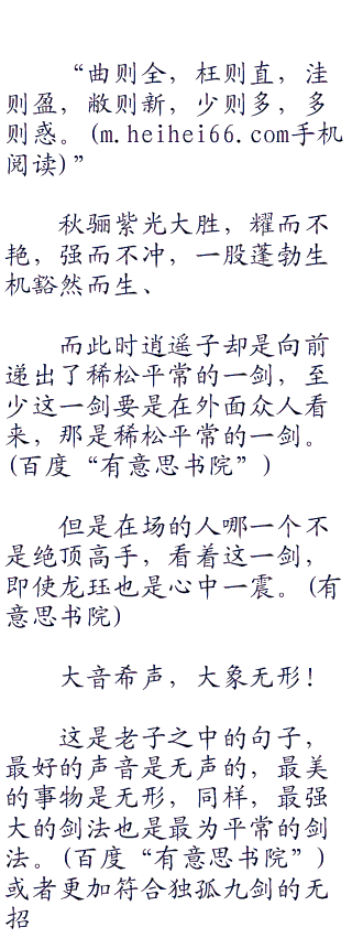 大道至简,这剑法可以一化二,二化三,三化无穷,同样也可以以无穷化一,即大成若缺,表示这一招永远没有完美的状态。