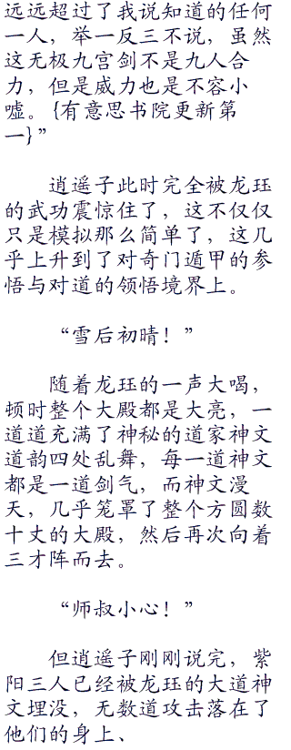 这是怎么做到?即使逍遥子都是心中巨颤,因为九章一样的逍遥游与九章可以组成完整一篇的逍遥游,完全就是两个概念。