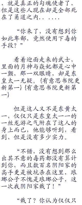 看到这一幕,焱妃与月神终于明白为什么阴阳家的顶尖高手不出现了,他们都在顾忌一个人,不,四个人四鬼!