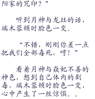 看着挣扎的端木蓉,龙珏不由拿起端木蓉的手腕,一股内力将她体内的毒性与阴阳咒印真压住了。