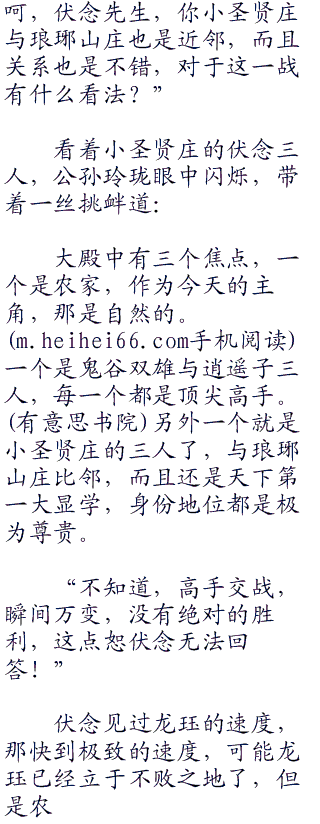 但是农家要是输了,可能农家六堂都要各奔东西,而不是一个整体,虽然这个整体只是名义上的,就像是当年的五岳剑派一样。但一个农家一个神农堂,完全就是一个不同概念。