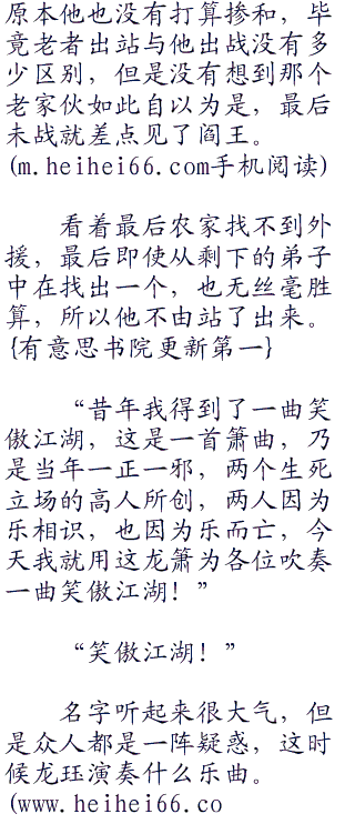 “农家的几位,希望这老头不是你们请来的外援,要是,那么只能请你们临时在重新找一个了,呵呵呵!”
