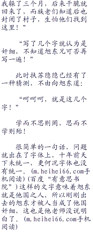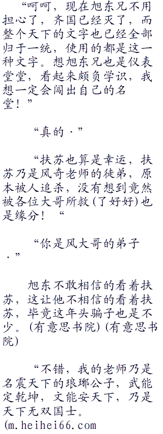 听到旭东的话,扶苏不由眉头一皱,怎么可能?要知道弟子规,三字经可是随着琅琊山庄贩卖的书籍才传遍天下的,因此这里不可能是青年说的那样,十年与外界不通。