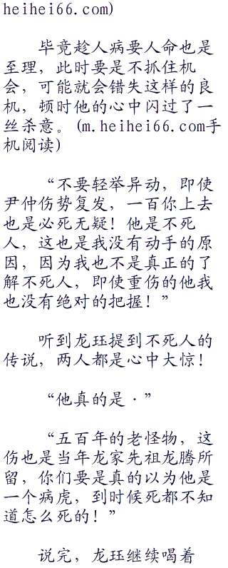 “呵呵呵·千万不要激动,你我一战还是等你找到灵境真正的治好了伤势再说,你身上八宝金莲的药力应该已经过去了吧。而且看你的样子,伤势复发应该有好几年了吧,你认为你现在是我的对手么?”