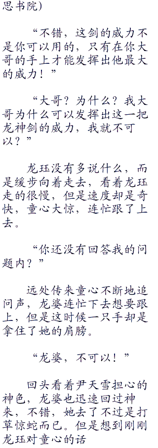 “血龙腾九霄,金龙惊风雨!说的就是当今武林两大不可力敌的高手,他们使用的就是龙神功,一个血龙,一个金龙,两者相互对立,称雄中原武林。我家公子就是其中的金龙,据她所说,这龙神功只有两种人可以修炼,一种他这样身居龙家血脉之人!