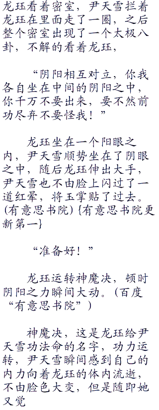 “你修炼的武功比较特殊,需要最后阴阳相融方能解决你身体的弊端,这对于别人而言很难,但是对我而言,很简单!”