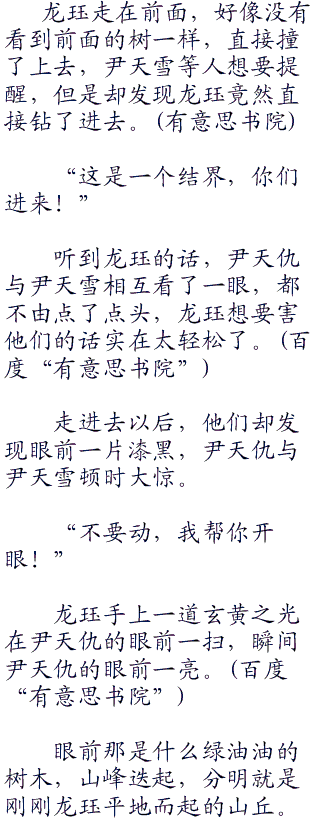 龙珏又是一阵嘀咕,原本出现在他们面前的山峰又是瞬间消失了,变成了葱葱绿绿的山林,看起来很是繁茂。