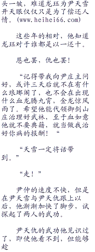 尹天雪与尹天仇终于明白了为什么龙珏与尹仲决战死伤会有这么多人了,两人交战,百丈之内都不是安全区,一旦他们在走动一下,到时候死伤更多。