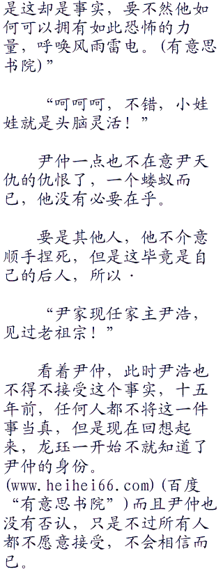 “大伯,你还没有明白么?尹仲就是活了五百年的不死人,当年哪一个童氏一族的叛逆,尹家的老祖。这虽然很难接受,但