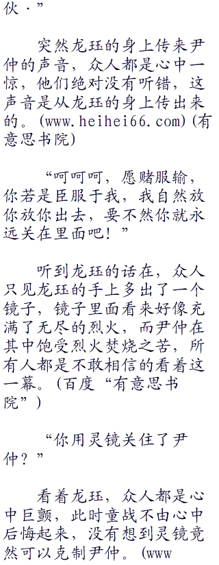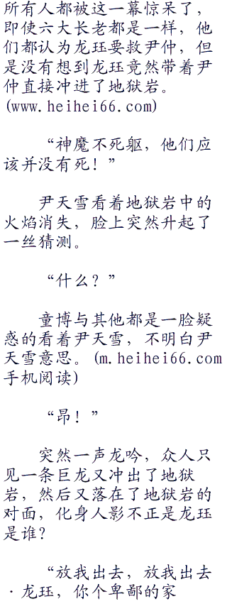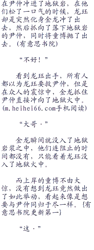 童博抓住尹仲分神的机会,一个上前直冲,直接将神龙剑送进了尹仲的体内,并且带着尹仲直接冲进了地狱岩.. ....